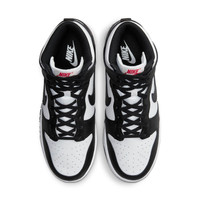 PRODUCT INFORMATION Model No: DD1869-103 Closure: Lacing Release Date: 2021-07-26 Upper Material: Leather Thickness: Regular Sole Colorway: Black/White Toe Type: Round Toe Upper: High Top Sole Material: Rubber Sole Season: All Season Color: black Series: Dunk Sub Series: Dunk High Nickname: Black White Occasion: lifestyle Designed for classic style and all-day comfort, the Nike Womens WMNS Dunk High is a must-have sneaker for any discerning fashionista. Constructed with premium leather, the upper features a black and white two-tone design that is accented by a red woven tongue tag. The toe box is perforated for breathability, and the rubber cupsole provides durable traction. A concentric rubber outsole completes the look and offers superior grip. Whether you're hitting the streets or the court, the Nike Womens WMNS Dunk High is sure to elevate your style.