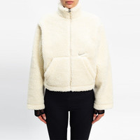 (WMNS) Nike Logo Fleece Stand Collar Stay Warm Short Jacket White CU6639-238