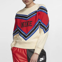 (WMNS) Nike Splicing Fleece Lined Knit Round Neck Pullover 'Beige Red' BV2921-115