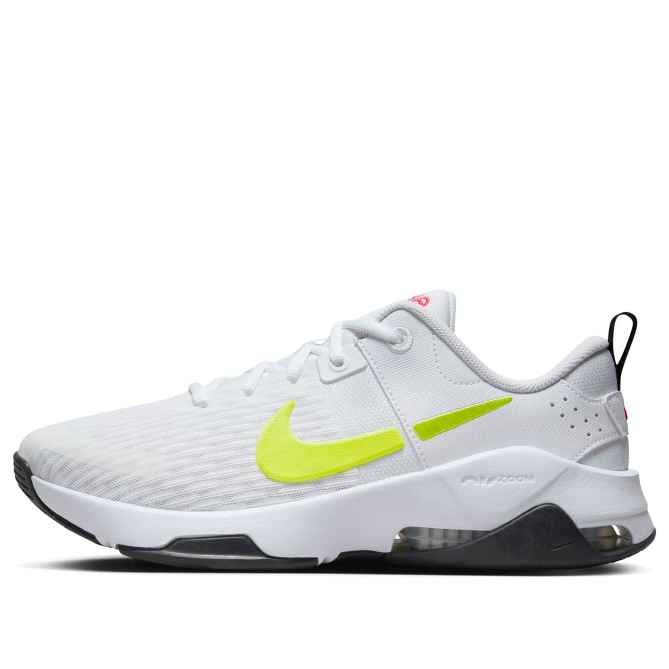 PRODUCT INFORMATION Model No: DR5720-107 Closure: Lacing Release Date: 2024-10-21 Upper Material: Mesh Thickness: Regular Sole Colorway: White/Hot Punch/Black/Cyber Toe Type: Round Toe Upper: Low Top Sole Material: Rubber Sole Color: white Series: Zoom Bella Nickname: White Hot Punch Occasion: training