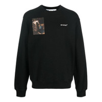 Men's Off-White FW22 Character Printing Round Neck Long Sleeves Loose Fit Black OMBA057C99FLE0111001