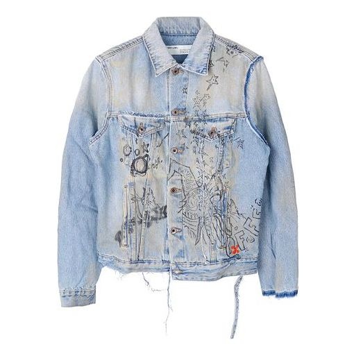 Men's Off-White Graffiti Denim Blue Jacket OMYE049F193860441428