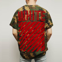 Off-White Red Short Sleeve Camouflage Green OMAA001F150580189920