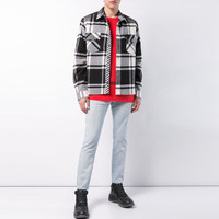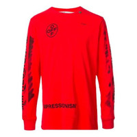 Off-White SS21 Logo Black Arrow Graffiti Printing Long Sleeves Red OMAB001R191850152010
