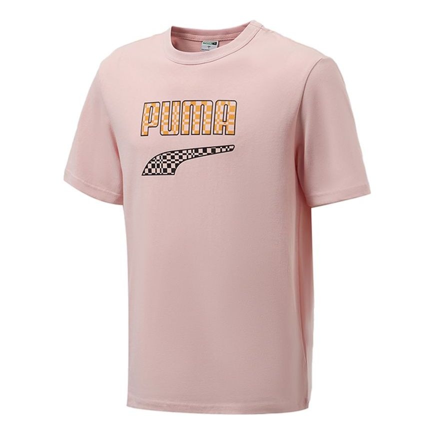 PUMA Funny Logo Printing Sports Round Neck Short Sleeve Pink Red 533042-36
