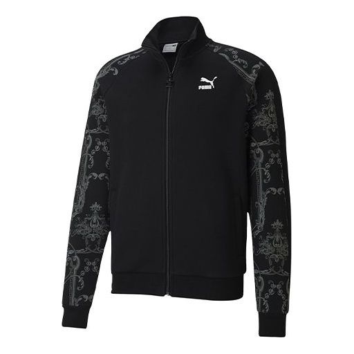 PUMA Luxe Aop Track Full-zip Printing Casual Zipper Stand Collar Sports Knit Jacket Black Gray 53031