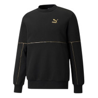 PUMA Luxe Crew Embroidered Logo Sports Round Neck Knit Pullover Black 534410-01