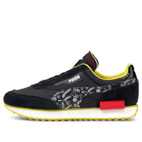 PRODUCT INFORMATION Model No: 380483-01 Closure: Lacing Release Date: 2021-01-26 Style: Sports Colorway: Black Heel Type: Flat heel Toe Type: Round Toe Sole Material: Rubber Sole Functionality: Cushioning/Slip-resistant/Wearable Season: All Season Color: black Series: Future Rider Nickname: Comic Strips Occasion: lifestyle One of the most iconic cartoon duosin history is teaming up with PUMA for a special capsule collection, and the Puma Peanuts x Future Rider 'Comic Strips' sneaker is a standout from the range. This playful take on the classic Future Rider silhouette features a black nylon upper with tonal suede overlays, and is covered in illustrations of Charlie Brown and Snoopy from the beloved comic strip. A red TPU midsole piece and mustard yellow accents add pops of color, while the Federbein rubber outsole provides excellent traction. Whether you're a diehard Peanuts fan or just looking for a fun and stylish sneaker, the Puma Peanuts x Future Rider 'Comic Strips'
