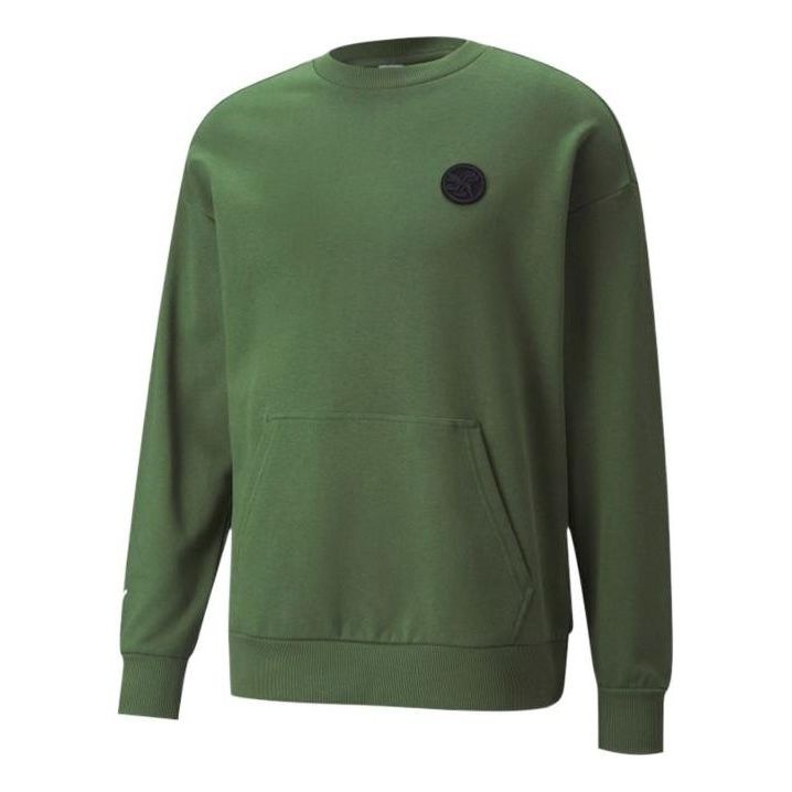 PUMA Solid Color Logo Round Neck Pullover Long Sleeves Unisex Green 532241-67