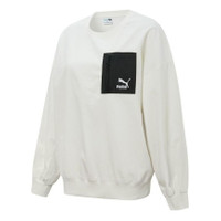 (WMNS) PUMA Contrasting Colors Zipper Pocket Sports Round Neck Pullover 'White' 534753-93