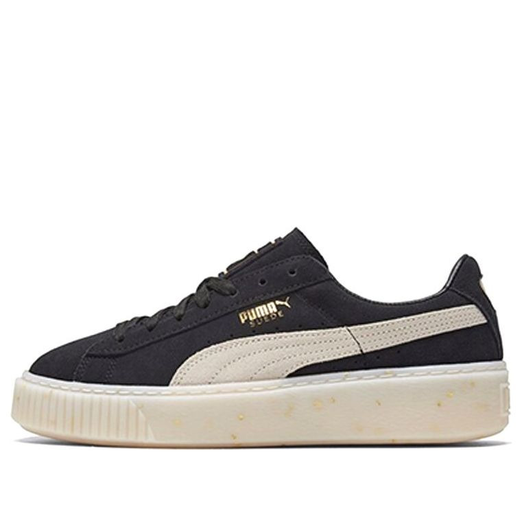 (WMNS) PUMA Suede Platform Black/White/Gold Board Shoes 365621-03