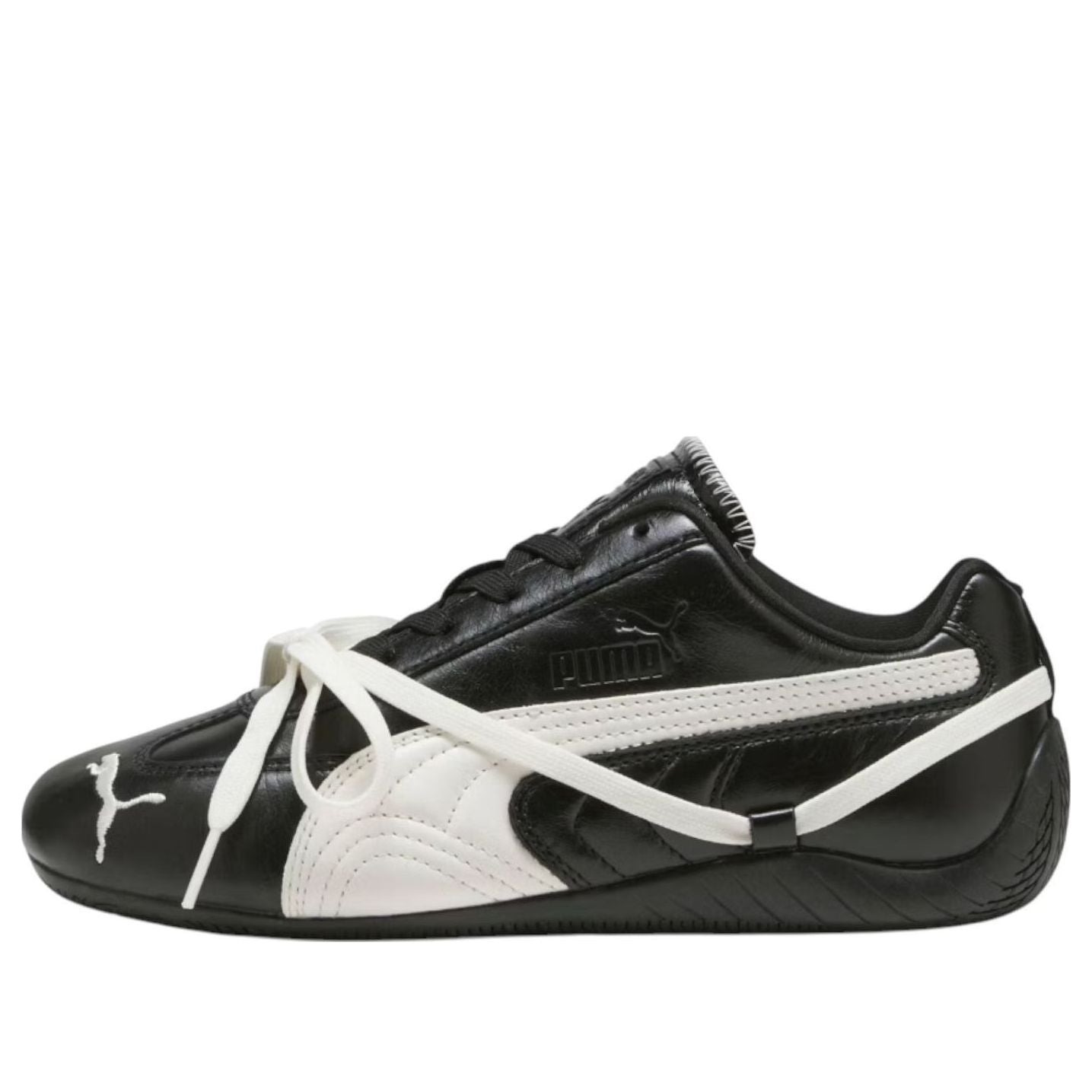 PRODUCT INFORMATION Model No: 404391-01 Closure: Lacing Release Date: 2025-08-29 Upper Material: Leather Thickness: Regular Sole Colorway: Black Toe Type: Round Toe Upper: Low Top Sole Material: Rubber Sole Color: black Series: Speedcat Nickname: Black Occasion: lifestyle Algolia Object Id: 33cef3f7-8969-4424-bc43-bd40a5b1b2cf Rose of BLACKPINK elevates the PUMA Speedcat. Premium black leather, a unique lace drape, and subtle "Rosie" branding create a sophisticated, must-have design. This is the Speedcat at its finest.