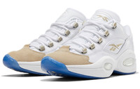 PRODUCT INFORMATION Model No: EF7609 Upper Material: PU Release Date: 2020-04-14 Style: Sports Colorway: Yellow Heel Type: Thick bottom Toe Type: Round Toe Sole Material: Rubber Sole Functionality: Cushioning Season: All Season Color: WHITE Series: Question Nickname: Oatmeal Occasion: basketball Reebok Question Low Retro 'Oatmeal' 2020 - Here's a classic colorway of Allen Iverson's signature shoe from 1999, back again for 2020. The build is faithful to the original, with white tumbled leather and a tan suede toe cap. Metallic bronze accents appear on the eyelets and Vector logos. A white EVA midsole provides Hexalite cushioning, while an icy blue semi-translucent outsole finishes it off.