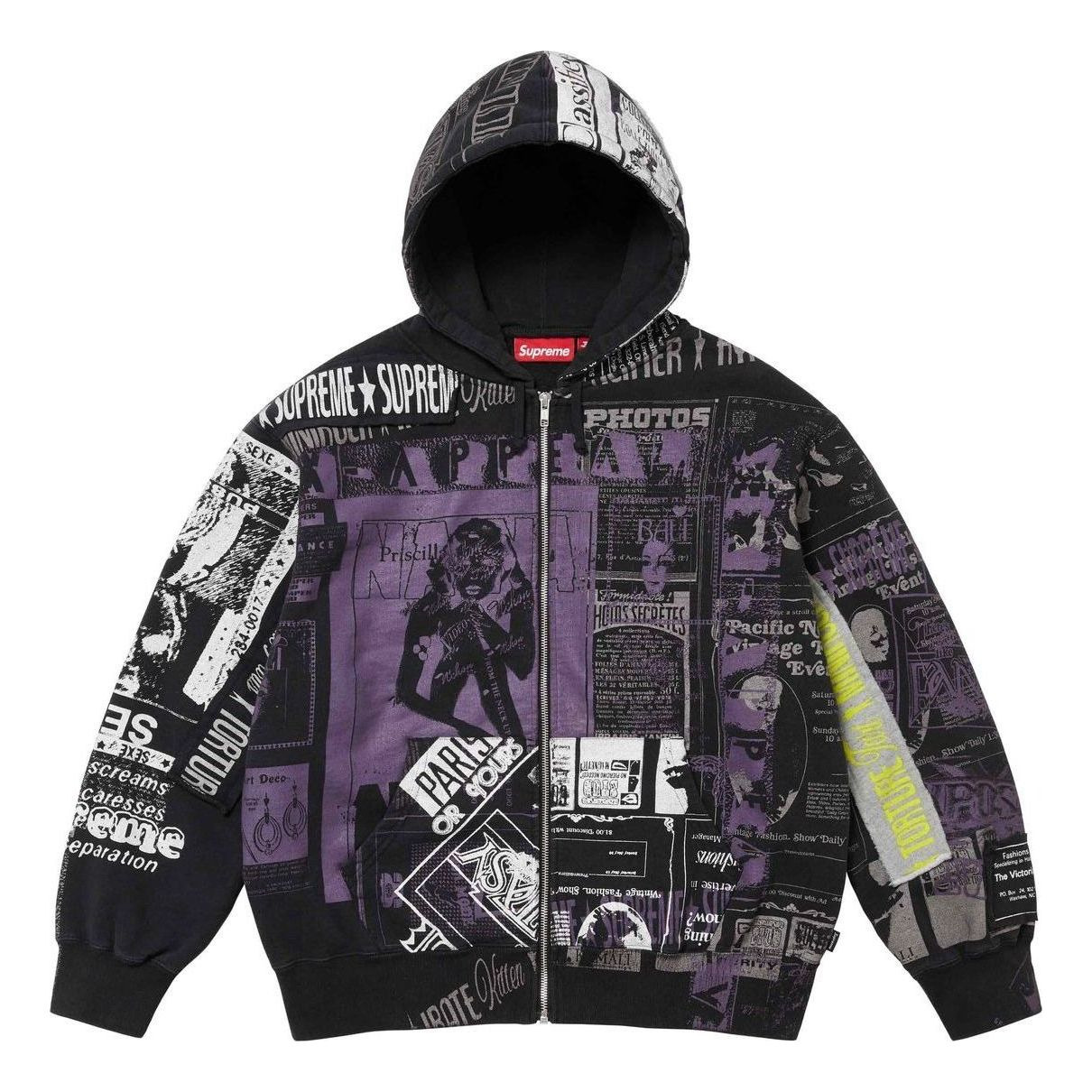 Supreme Collage Zi[p Up Hooded Sweatshirt 'Black Purple White' SUP-SS24-223