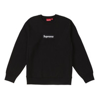 Supreme FW18 Box Logo Crewneck Black Round Neck Pullover Fleece Lined Unisex SUP-FW18-1070