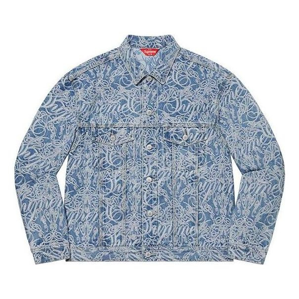 Supreme Script Jacquard Denim Trucker Jacket Washed Blue