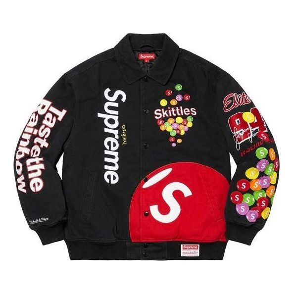 Supreme x Skittles x Mitchell & Ness Varsity Jacket 'Black Multi-Color' SUP-FW21-328
