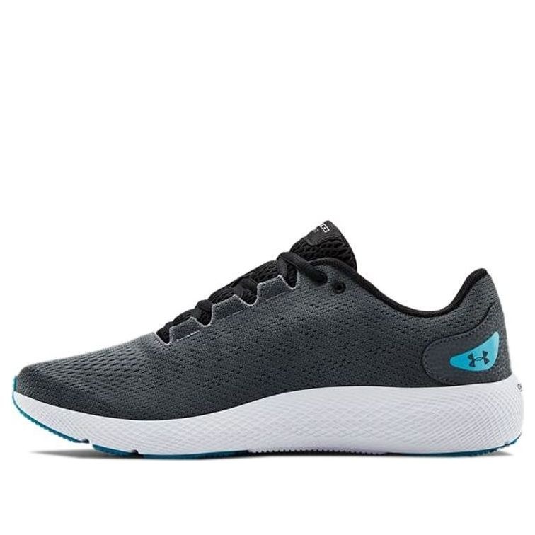 PRODUCT INFORMATION Model No: 3022594-100 Closure: Lacing Release Date: 2021-04-15 Style: Simplicity Colorway: Grey/Blue Heel Type: Flat heel Toe Type: Round Toe Sole Material: Rubber Sole Functionality: Cushioning Color: GREY Series: Charged Sub Series: Charged Pursuit Occasion: running