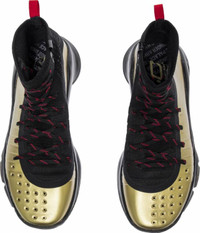 PRODUCT INFORMATION Model No: 3022393-001 Closure: Lacing Release Date: 2022-11-28 Upper Material: Mesh Thickness: Regular Sole Colorway: Black / Gold-Red Toe Type: Round Toe Upper: Low Top Sole Material: EVA Foam Color: gold Series: Steph Curry Sub Series: Curry 4 Nickname: Shoe Palace 25th Anniversary Occasion: basketball