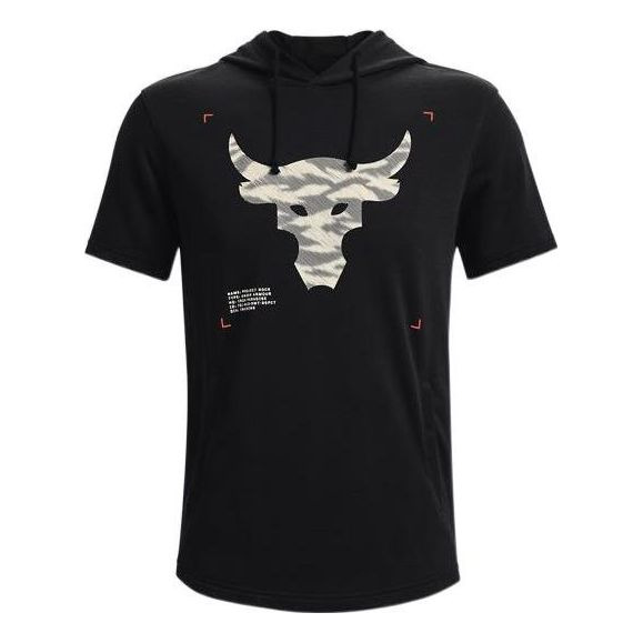 Under Armour Project Rock Terry Short Sleeve Hoodie 'Black Beige' 1370465-001