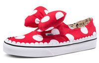 PRODUCT INFORMATION Model No: VN0A38ETUJ3 Closure: Lacing Release Date: 2018-10-04 Style: Sports Colorway: Red/White Heel Type: Flat heel Toe Type: Round Toe Sole Material: Rubber Sole Functionality: Slip-resistant/Lightweight Season: All Season Color: RED Series: Authentic Occasion: skateboarding To honor Mickey Mouse's 90th birthday, Vans teamed up with Disney for a special collection. The Vans Authentic Gore 'Minnie's Bow' was created to celebrate Minnie Mouse's iconic style. The sneaker features a red and white polka-dot design on the canvas upper, with Minnie's signature bow in place of laces. The interior of the shoe is stamped with classic Mickey cartoons for a unique look. The sneakers come in their own special-edition packaging, making them the perfect gift for any Disney fan.