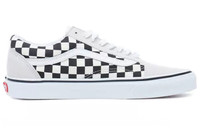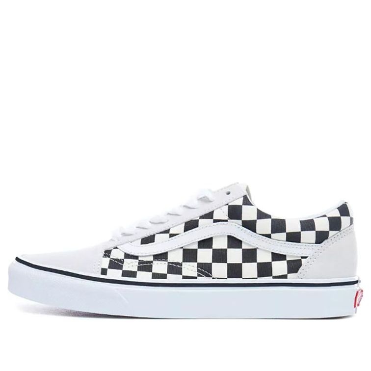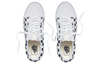 PRODUCT INFORMATION Model No: VN0A38G127K Closure: Lacing Release Date: 2018-02-27 Style: Sports Colorway: Black/White Heel Type: Flat heel Toe Type: Round Toe Sole Material: Rubber Sole Functionality: Slip-resistant/Lightweight Season: All Season Color: WHITE Series: Old Skool Nickname: Checkerboard Occasion: skateboarding Introducing the Vans Old Skool 'Checkerboard' - a classic shoe with a fresh twist. The iconic black and white checkerboard pattern is given new life with a white leather jazz stripe, while the toe, heel and eyestay are overlaid with Off-White suede. The vulcanized rubber midsole is accented with a black foxing stripe and Vans' signature 'Off the Wall' license plate in red, creating a shoe that is both classic and modern.