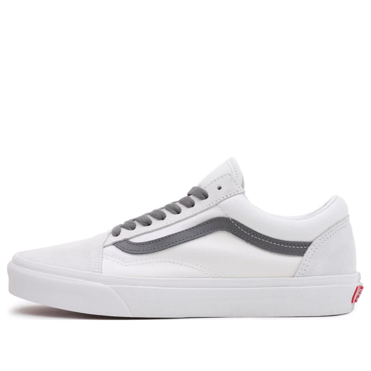 PRODUCT INFORMATION Model No: VN0005UFPWT Closure: Lacing Release Date: 2023-02-16 Thickness: Regular Thickness Colorway: WHITE/GRAY Heel Type: Flat heel Toe Type: Round Toe Upper: Low Cut Sole Material: Rubber Sole Color: grey Series: Old Skool Occasion: skateboarding