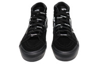 PRODUCT INFORMATION Model No: VN0A4BVH5X0 Closure: Lacing Release Date: 2021-07-22 Style: Street Style/Trendy Colorway: Black Heel Type: Flat heel Toe Type: Round Toe Sole Material: Rubber Sole Functionality: Slip-resistant/Wearable Season: All Season Color: BLACK Series: Sk8-Hi Nickname: Mean Eyed Cat - Black Occasion: skateboarding Patta and Vans have joined forces once again, this time to bring you the Patta x Vans Vault Sk8-Hi Reissue VLT LX ‘Black’. This sneaker features a black canvas upper with color-matched suede on the vamp, eyestay and heel overlay. ‘Team Patta’ is printed in a repeating pattern on the laces, while each of the side panels feature Patta’s oversized script logo in white. The vulcanized black rubber midsole rounds out the look and feel of this sneaker.