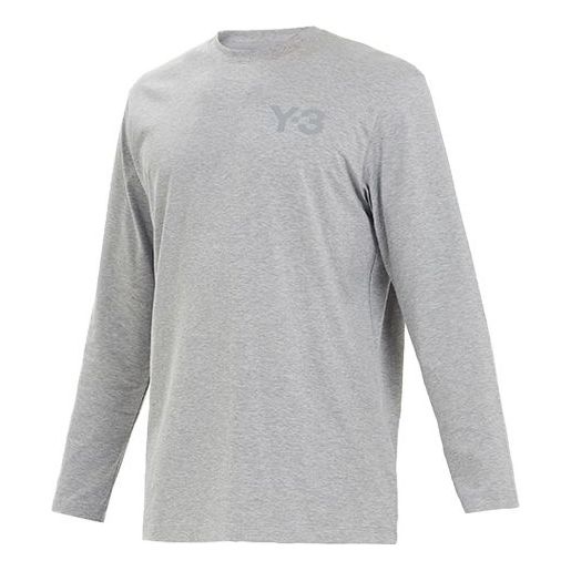 Men's Y-3 Logo Pattern Micro Mark Casual Long Sleeves Round Neck Gray T-Shirt GK4516