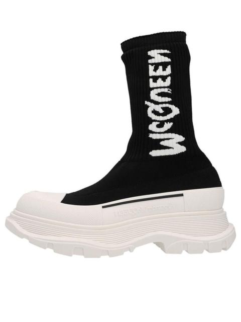 (WMNS) Alexander McQueen Tread Slick Knitted Boots 'Black White' 708096W4U511041