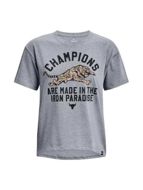 (WMNS) Under Armour Project Rock Iron Heavyweight T-shirt 'Grey' 1376918-035