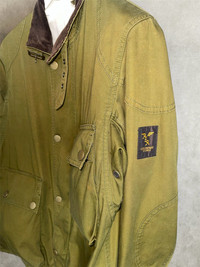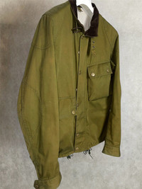 2006 Riding Equipment Research (R.E.R) oil coated biker/riding jacket *condi:7/10 *Good condition with heavy sign of using. Removed main tag due to years of wear and tear *this jacket features a cotton lining, three concealed pockets inside and three exterior cargo pockets. Due to its chemical coating, perspiration can easily lead the jacket to get patinaed throughout. A lil company background ts. When GR came to an end back in 2005, Setsuma Kobayashi made the decision to develop a brand centered around a particular topic, which ultimately became the “RESEARCH,” it includes brands like “Navy Research,” “Prisoner Uniform Research,” “Paper Boy Gear Research,” and “Mountain Research.” Size:Medium Pit to pit:22 Length:28 Shoulder:17 Sleeve:26 Hem:22