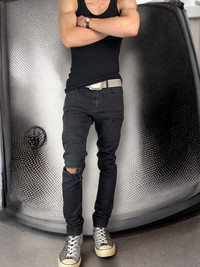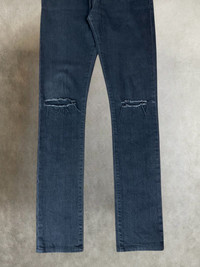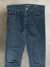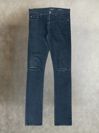 Fw 2014 saint laurent paris D02 knife cut distressed black denim pants *Condi:7/10 *Good condition with normal sign of using These pre distressed denim pants, which were designed by Hedi Slimane, have a slim skinny fit with a “knife” slit that distresses both knees Size:29 Waist:32 Outseam:41.3 Inseam:32.7 Crotch:10 Thigh:9.5 Knee:6.5 Leg opening:5.7