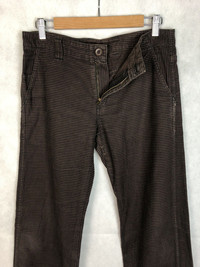 Johnbull brown pinstripe pants *condi:7/10 *heavy signs of wear and tear. Overall still presentable Size:L Waist:33 inches Inseam:31 Outseam:40 Crotch:9.5 Thigh:11 Knee:9 Leg opening:8.7