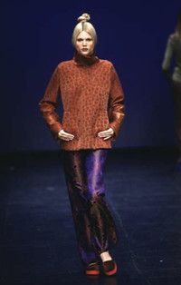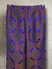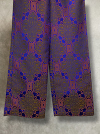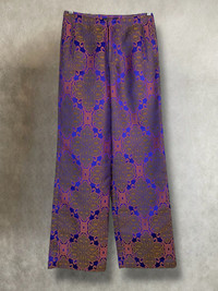 Fw1998 Vivienne Tam chameleon jacquard brocade trousers *Condi:8/10 *Excellent condition with light sign of using These chameleon pants have a reversible design made of a jacquard brocade pattern that changes color from purple to blue to brown depending on where the lighting hits Size:28 (im 30’ this fits me high waisted) Waist:28-29 Outseam:41.5 Inseam:33 Crotch:9 Thigh:11 Knee:10 Leg opening:10