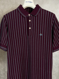 Fw2013 Vivienne westwood man burgundy pinstripe polo shirt *Condi:7/10 *Good condition with normal sign of using Size:Large Pit to pit:18.5 Length:29.5 Shoulder:15.5 Sleeve:9.8 Hem:18
