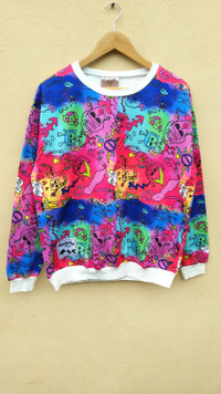 ITEM : Miauler Mew Black Full print sweatshirt TAG : M2 MEASUREMENT : (taken while garment is laying flat) - Width (Armpit to armpit) :23.5" Inches / 59.69 cm - Length (Shoulder to the end of garment) : 26"Inches / 66.04 cm CONDITION : - Condition used 9/10 good Material : 100% cotton Nice design no stain no holes SHIPPING: Shipping duration is vary depending on location..all item is ship with tracking and usually will arrive within 10 - 21 working days PAYMENT: We accept PayPal only. The item will be sent within 3 days after payment is completed. I will describe as good as possible for my items. Please email me for any question and your telephone numbers for details and shipping process. Thanks so Much for your visited.