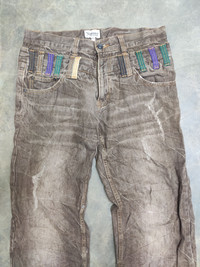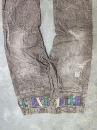 100% cotton made in Japan MEASUREMENT : (taken while garment is laying flat) - Width : 16" Inches - Length inseam : " Inches - Length outseam : " Inches - Rise : " Inches - Thigh : " Inches - Knee : " Inches - Leg opening : " Inches CONDITION : - Condition used Nice design ref120 SHIPPING: Shipping duration is vary depending on location..all item is ship using by National Post or DHL International with tracking and usually will arrive within 21 - 28 days however if purchasing more than $100 automatically will be ship in DHL EXPRESS Arrived in 7 days only. PAYMENT: We accept PayPal only. The item will be sent within 3 days after payment is completed. I will describe as good as possible for my items. Please email me for any question and your telephone numbers for details. Thanks so Much for your visited