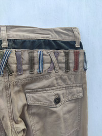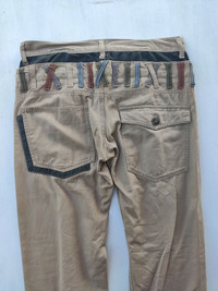 100% cotton MEASUREMENT : (taken while garment is laying flat) - Width : 16" Inches - Length inseam : 31" Inches - Length outseam : 41.5" Inches - Rise : 10.5" Inches - Thigh : 18" Inches - Knee : 14" Inches - Leg opening : 12" Inches CONDITION : - Condition used 9/10 good Nice design a bit stain but not major issues stain no holes ref85 SHIPPING: Shipping duration is vary depending on location..all item is ship using by National Post or DHL International with tracking and usually will arrive within 21 - 28 days however if purchasing more than $100 automatically will be ship in DHL EXPRESS Arrived in 7 days only. PAYMENT: We accept PayPal only. The item will be sent within 3 days after payment is completed. I will describe as good as possible for my items. Please email me for any question and your telephone numbers for details. Thanks so Much for your visited.
