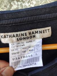 ITEM : Katherine Hamnett t shirt long sleeve TAG : Katherine Hamnett Made in Japan Size on tag L but fit to M MEASUREMENT (manual size) : - Width (Armpit to armpit) : 21.5" Inches - Length (Shoulder to the end of garment) : 25" Inches CONDITION : - No holes. - No stain - Condition used item colour 9\10 Nice design rare item Ref number : 51 When buying vintage clothing (especially t-shirts), always refer to the provided measurements rather than the tag size. SHIPPING: Shipping duration is vary depending on location..all item is ship using by National Post or DHL International with tracking and usually will arrive within 14 - 21 days PAYMENT: We accept PayPal only. The item will be sent within 3 days after payment is completed. I will describe as good as possible for my items. Please email me for any question and your telephone numbers for details. Thanks so Much for your visited