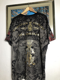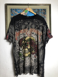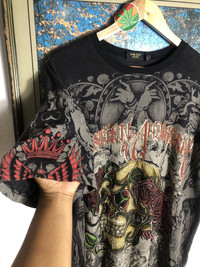 Y2K Rare Christian Audigier Overprint Skull Tee