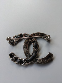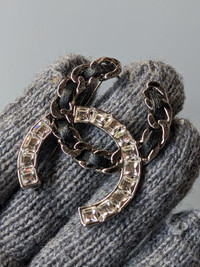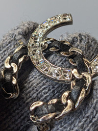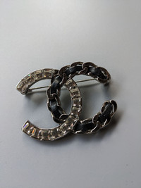 Chanel brooch leather crystal