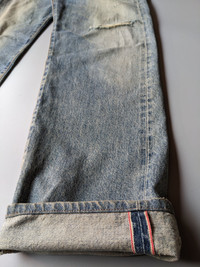 Edwin 505x faded blue distressed selvedge jeans