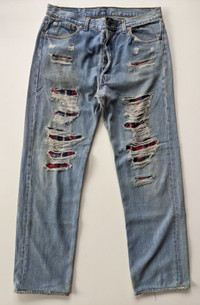 Other - Japanese ripped jeans tartan patchwork