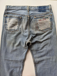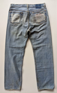 Size:34inches manual measurement Thigh:12inches Knee:9.5inches Leg opening:8.5inches Inseam:30.5inches Condition:used