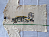 THIS IS USED CLOTHING!!! PLEASE DONT EXPECTED IT TO BE LIKE NEW OR IN PRISTINE CONDITION! See Photos MEASUREMENTS: Width (armpit to armpit):17 inches Length (shoulder to end of garment):28inches Shoulder To Sleeve: CONDITION:Used Item /Still Good for wear/See Details Photos *little bit yellowish long time keep in store Material:cotton Size:small Made In usa Worldwide Method Shipping