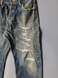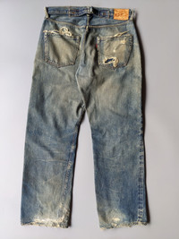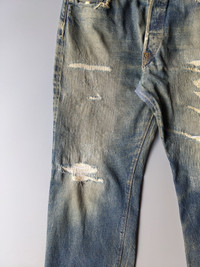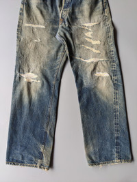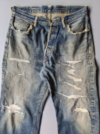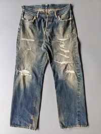 Vintage Denime buckle back distressed selvedge jeans