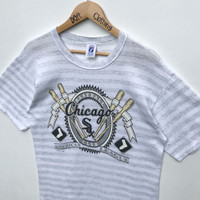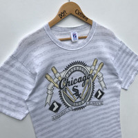 Logo 7 × MLB × Vintage - Vintage 90s Chicago White Sox MLB Stripe Shirt Logo 7