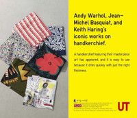 Jean-Michel Basquiat Designer Handkerchief Bandana Limited Edition Uniqlo New With Tag. LIMITED EDITION (please see the pictures for details) FABRIC DETAILS 100% Cotton SIZE 46×46cm Ship to worldwide • All items will be shipped out within 1-3 days after payment received. • Usually, it takes about 18 - 24 business days for delivery for all International order. Sometimes, It may take up to 24 working days. However after 30 days your item still not arrive, please contact us immediately. • For Holiday Period (eg: Christmas, Chinese New Year and etc), shipping will take longer time to • reach. Please be patient when awaiting shipment. PAYMENT PayPal ONLY No Refund / No Return VISIT MY STORE FOR MORE ITEMS...THANKS