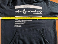 READ TERMS & CONDITION PLEASE BELOW BEFORE BUY Andy Warhol Hoodie Pre-owned in very good condition. (please see the pictures for details) MEASURES ABOUT (APPROXIMATELY) # ARMPIT TO ARMPIT: 23 INCH # LENGTH (BACK COLLAR DOWN): 27 INCH # SIZE ON TAG : M NOTE : (please see the pictures for details) Ship to worldwide All items will be shipped out within 1-3 days after payment received. Usually, it takes about 18 - 24 business days for delivery for all International order. Sometimes, It may take up to 24 working days. However after 30 days your item still not arrive, please contact us immediately. For Holiday Period (eg: Christmas, Chinese New Year and etc), shipping will take longer time to reach. Please be patient when awaiting shipment. PAYMENT PayPal ONLY